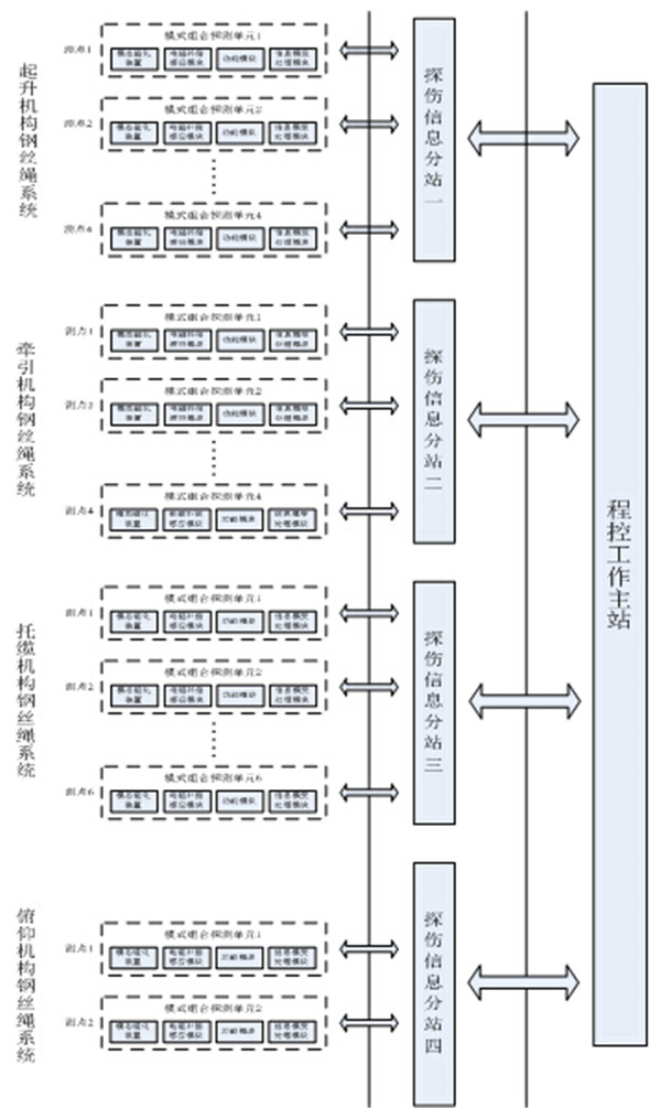該係統分為模式組合探測單元、探傷信息分站和程控工作主站(設險情狀態預報警機製)三大部分,各部分均定點安裝。