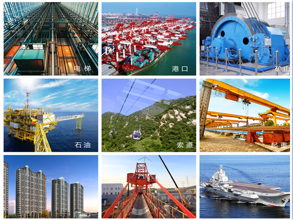 產品廣泛應用於電梯、礦山、港口、石油、索道、電力、冶金、起重機械、船舶、工業、斜拉橋及軍事等領域。在國內市場具有高份額的市場占有率,在國際市場遠銷多個國家。