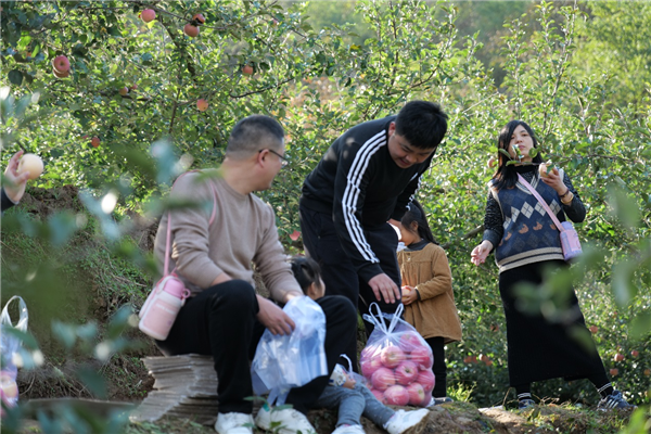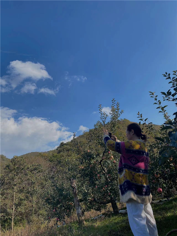 高海拔的條件,外加長時間的日照,使得當地的蘋果肉質細膩、水分飽滿、甜度充足,嚼在嘴裏沒有果渣,不愧是水果之王。快看這些小夥子們連摘都顧不過來,直接就地開吃了!